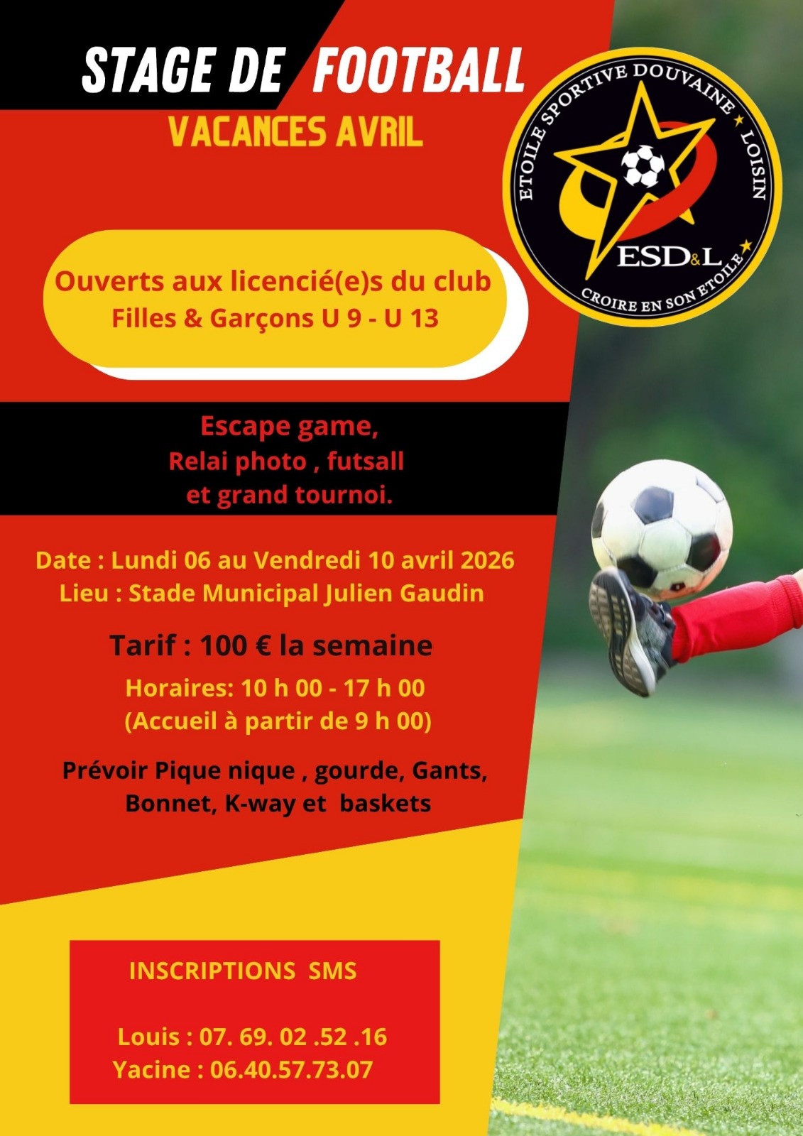 STAGE DE FOOT – VACANCES DE PRINTEMPS 🌿